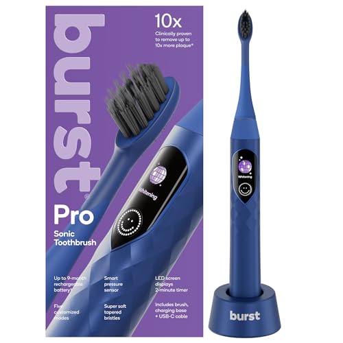 Burst Pro Sonic Advanced Electric Toothbrush for Adults (Blue) | Soft Bristles | 33,000 Vibrations | Long-Lasting Battery and Multiple Brushing Modes