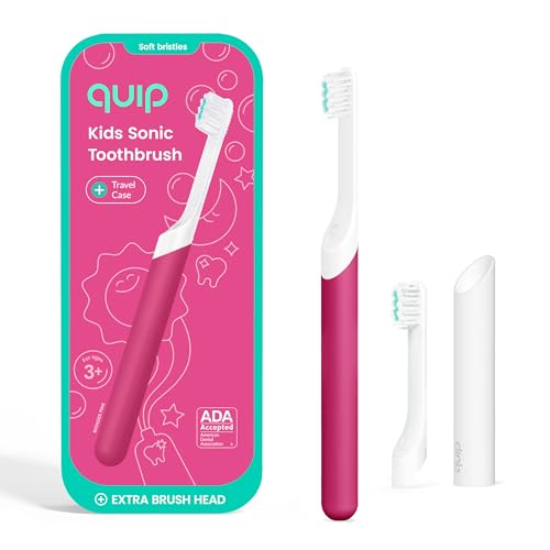 Quip Kids Electric Toothbrush, Battery-Powered Sonic, Wonder Pink, with Extra Brush Head and Travel Cover