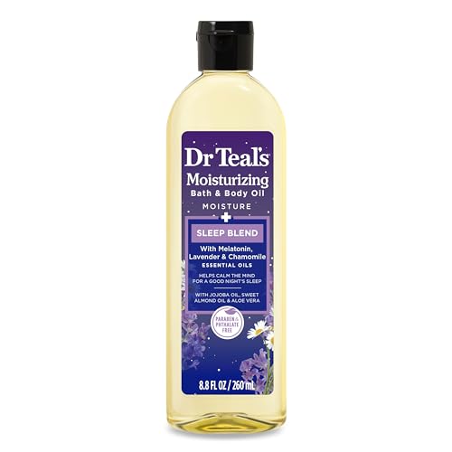 Dr Teal’s Moisturizing Bath & Body Oil, Sleep Blend with Melatonin, Lavender & Chamomile Essential Oils, 8.8 fl oz.