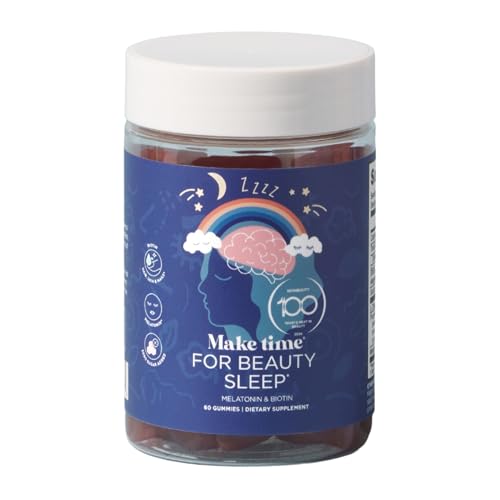 MAKE TIME Beauty Sleep Gummies – 5mg of Melatonin & Biotin Supplement for Restful Sleep, Relaxation & Healthy Hair, Skin & Nails – Sugar-Free Formula with L-Theanine and Magnesium (60 Gummies)