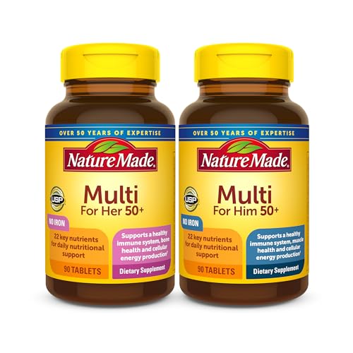 Nature Made Multivitamin 50+ His & Hers Combo Pack, Mens and Womens Multivitamin with Vitamin C, Vitamin D3, B Vitamins, Zinc & More, Two Multivitamin Bottles