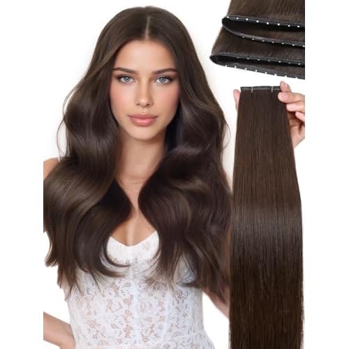 LADY MIRANDA Double Invisible Hand-tied Human Hair Extensions 18 Inch Genius Twin Tab Remy Human Hair Weft 100g Micro Bead Hair Extensions Real Human Hair (Brown)