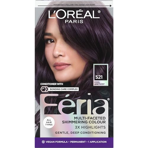 L’Oreal Paris Feria Multi-Faceted Shimmering Permanent Hair Color, 521 Cool Amethyst, Pack of 1 Hair Dye Kit