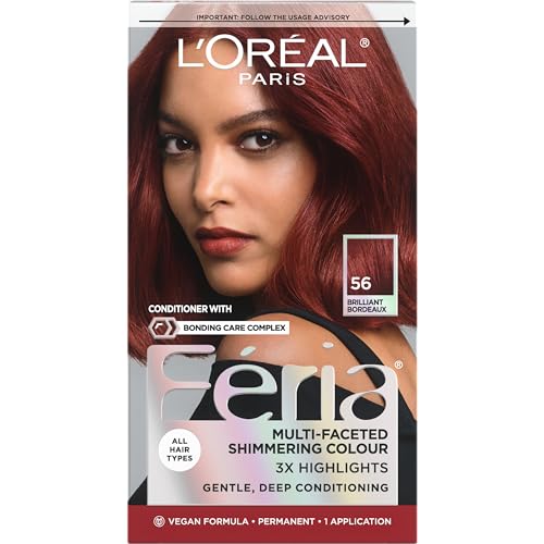 L’Oreal Paris Feria Multi-Faceted Shimmering Permanent Hair Color, 56 Brilliant Bordeaux (Auburn Brown), Pack of 1, Hair Dye
