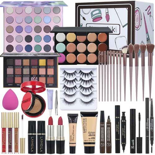 All in One Makeup Kit for Women Full Kit, Make Up Gift Set for Women, Makeup Essential Bundle Includes Foundation Face Primer Eyeshadow Contour Palette Lipstick Eyeliner Mascara Cosmetic Brush Set