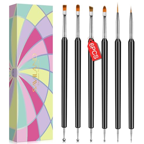 SAVILAND Nail Art Brushes Set – 6pcs Double-End Nail Art Tools Professional Nail Art Kit Dotting Tools Line Pen Painting Brushes for Gel Polish Nail Design French Manicure