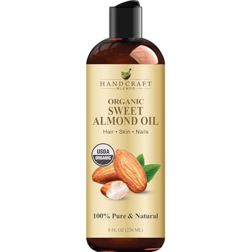 Handcraft Blends Organic Almond Oil – 8 Fl Oz – 100% Pure and Natural – Premium Grade Oil for Skin and Hair – Carrier Oil – Hair and Body Oil – Massage Oil – Hexane-Free