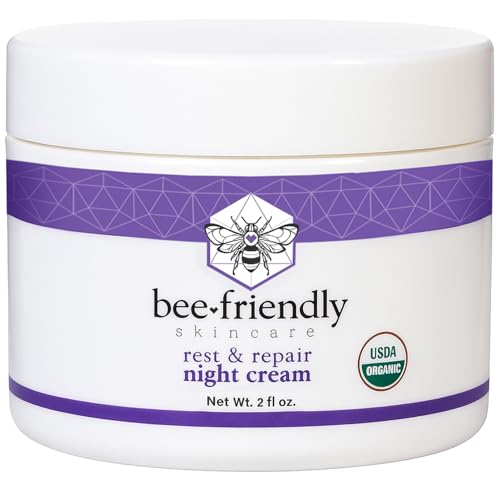 BeeFriendly Organic Night Cream, USDA Certified Organic, Deep Hydrating & Moisturizing Night Time Eye, Face, Neck & Decollete Cream for Women and Men, Anti Aging, Anti Wrinkle 2 oz