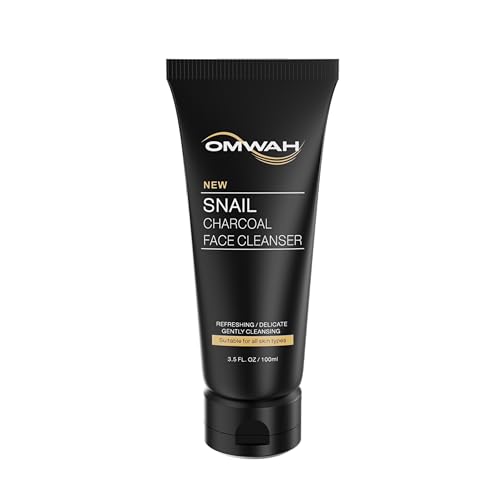OMWAH Advanced Snail Mucin Gel Face Cleanser Infused with Activated Charcoal | Rich Daily Deep Cleansing Gel (3.5 OZ)