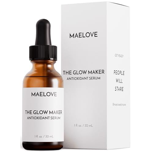 MAELOVE Glow Maker Vitamin C Serum with Vitamin E, Ferulic Acid & Hyaluronic Acid, Award-Winning Brightening and Hydrating Facial Serum, Unscented, 1.0 fl oz