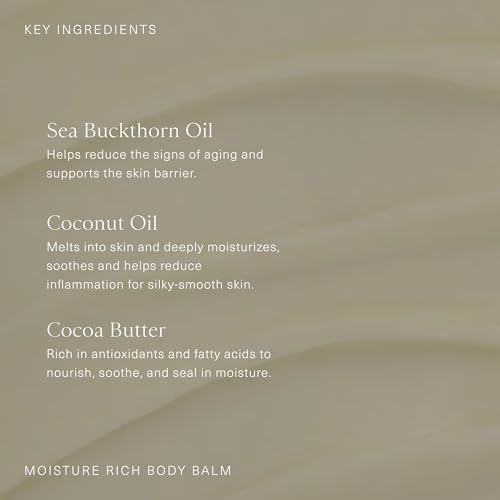 Oak Essentials Moisture Rich Body Balm, Hydrating Balm-to-Oil Body Moisturizer with Sea Buckthorn Oil, Coconut Oil and Cocoa Butter, Nourishing Skincare for Dry Skin, 5.3 Oz