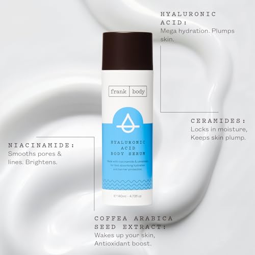 Frank Body Hyaluronic Acid Body Serum | Hydrates & Strengthens Skin Barrier | Lightweight, Fast-Absorbing | With Niacinamide 3%, Ceramides & Hyaluronic Acid | Vegan & Cruelty-Free | Peach Scent |140ml