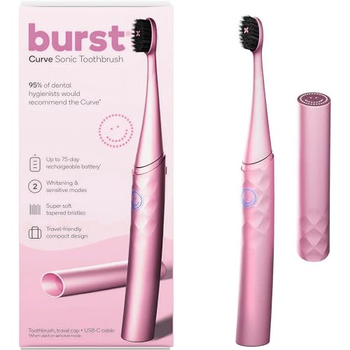 Burst Curve Sonic Electric Toothbrush for Adults (Blush Pink) | Slim Travel Brush with Cover | Ultra Soft Bristles | Up to 2 Month Rechargeable Battery | Two Modes & Timer