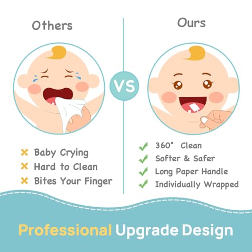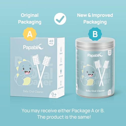 Papablic Baby Tongue Cleaner, Baby Oral Cleaner, Disposable Infant Mouth Cleaner Newborn, Upgrade Gum Cleaner with Paper Handle for Infants Ages 0-2 Years, 40 Pack