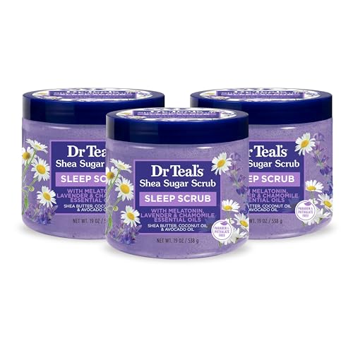 Dr Teal’s Shea Sugar Sleep Scrub, with Melatonin, Lavender, & Essential Oils, 19oz (Pack of 3)