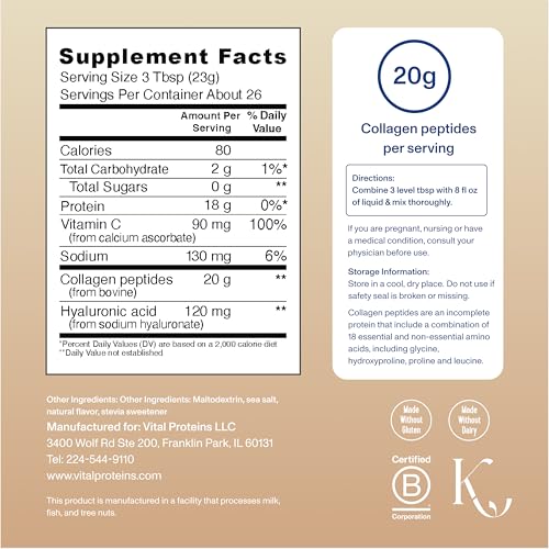 Vital Proteins Collagen Peptides Advanced, Hydrolyzed Peptides with Hyaluronic Acid and Vitamin C – Vanilla Flavor Powder, 21oz