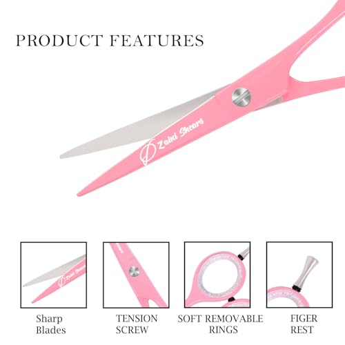 Hair Cutting Scissors Extremely Sharp Right-Hand Razor Edge – 5.5” Overall Length,Made of 420c Japanese Stainless Steel Salon Scissors Professional Barber Haircut Scissors (pink, 5.5”)