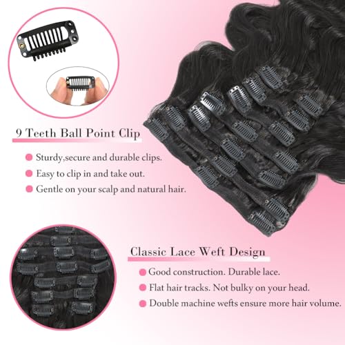 Body Wave Clip in Hair Extensions Real Human Hair, 8Pcs 120g Wavy Human Hair Clip in Extensions for Women 12A Brazilian Virgin Wavy Human Hair Extensions Clip ins Natural Black (#1B,16 Inch)