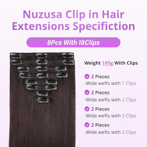 Clip in Hair Extensions Real Human Hair,100% Seamless Invisible Remy Human Hair Silky Straight,Clip Extensions for Women, 8pcs Per Set with Double Weft,2 Dark Brown,20inch 105g/3.7oz