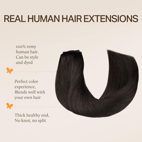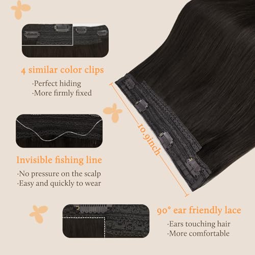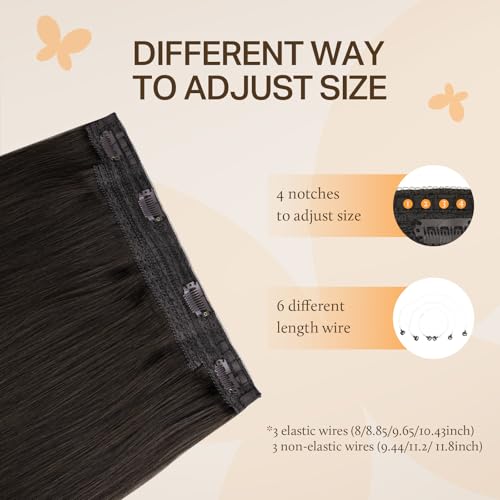 DOORES Wire Hair Extensions 18 Inch 95g Remy Human Wire Hair Extensions Invisible Transparent Line Adjustable Hairpieces Secret Extensions Straight Hair Dark Brown