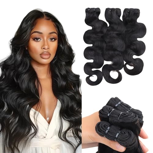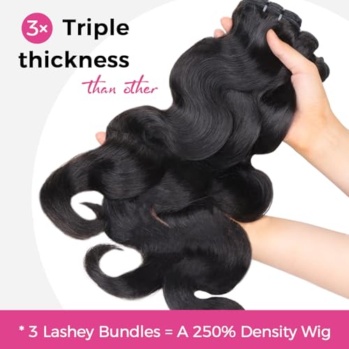 Lashey Human Hair Bundles Body Wave 3 Bundles 16 18 20 Inches 100% Virgin Human Hair Bundle Soft and Bouncy Double Weft Body Wave Bundles Human Hair Extensions Natural Black
