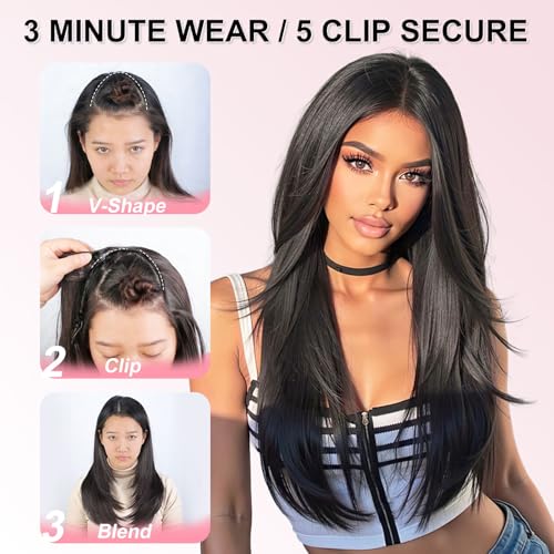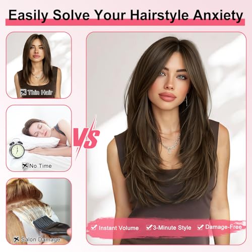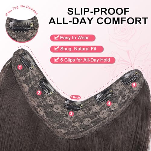 QGZ Dark Brown Clip in Hair Extensions for Women Long Straight Layered Synthetic Hair with 5 Clip One-Piece Design, Soft & Face Framing 22 Inch