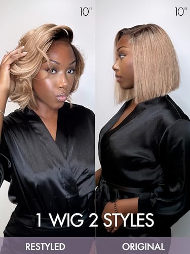 LUVME HAIR Bob Wig 100% Human Hair Wigs Glueless Lace Front 10 Inches Ash Blonde Bob, Pre Cut Plucked Hd Lace Short Wig Ready To Go Natural Color Straight Bleached Knots Side Part Black Wigs