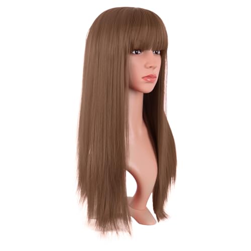 MapofBeauty 24 Inch/60 cm Long Straight Synthetic Hair Heat Resistant Party Cosplay Wig (Medium Brown)