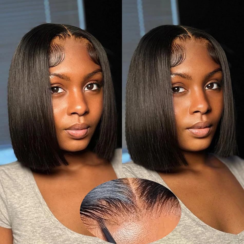 【Wear and Go Glueless Bob Wig Advantage】:Glueless Wigs Human Hair Pre Plucked Pre Cut ,Save Time,30 Seconds to Give You Charming & Natural Hair, Without Any Skills,No Glue,No Gel,No Spray,Just Wear and Go,Easy and Quick,Very Convenient to Put On or Take Off, Friendly for Beginners