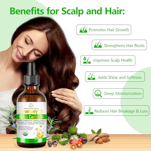 Organic Natural: USDA certified 100% pure, safe, and gentle, the rosemary castor oil made with cold-pressed, organic oils—free from sulfates, parabens, silicones, and hexane. Safe for daily use and sensitive scalps, giving you peace of mind while caring for your hair naturally.