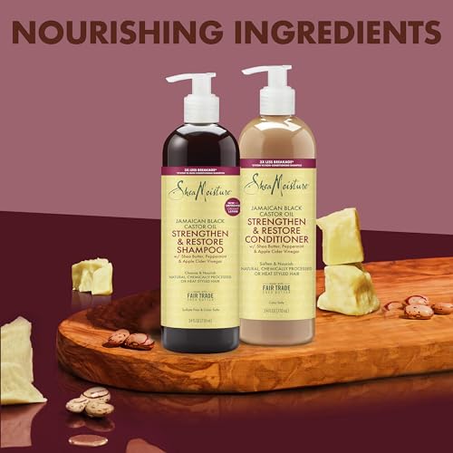 SheaMoisture Strengthen & Restore Shampoo and Conditioner Bundle Jamaican Black Castor Oil 2 Pack to Cleanse & Nourish Dry, Damaged Hair, 24 oz