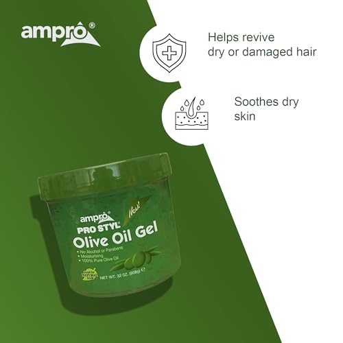 AmPro Pro Styl Protein Styling Gel – Moisturizes and Defines Strands – Helps Protect and Hydrate, Tames and Adds Shine without Weighing Down Tresses – Alcohol and Paraben Free – Olive – 32 oz