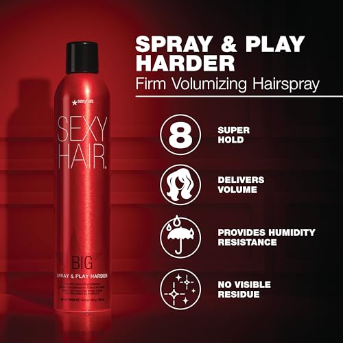 SexyHair Big Spray & Play Harder Firm Volumizing Hairspray | All Day Hold and Shine | Up to 72 Hour Humidity Resistance