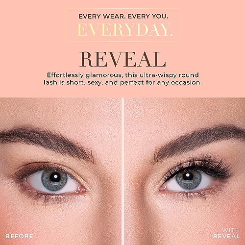 FLUTTERY AND WISPY LASHES: The Reveal Lash is a round shaped lash great for round, upturned, and almond eye shapes. These are wispy lashes with a fluttery look that will make your eyes pop even if you are just going into the office or on Zoom Calls.