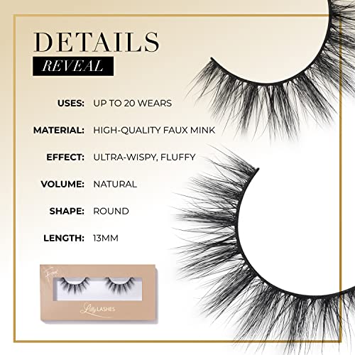 Lilly Lashes Everyday Reveal Faux Mink False Eyelashes – Natural Look Wispy Strip Lashes – Short, Round Shaped, 13 mm – Reusable Up to 20 Times