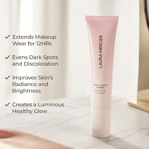 Laura Mercier Pure Canvas Primer Illuminating, Improves and Extends Wear of Makeup, Radiant Finish, Boosts Skin’s Brightness, Evens Dark Spots and Discoloration, Travel Size