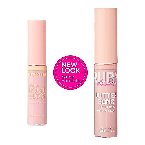 Ruby Kisses Lip Gloss Butter Bomb Gloss Non-Sticky Lip Gloss Vitamin E Natural Nude Lip Makeup – 7.8mL (0.26 US fl.oz) (Like A Virgin)