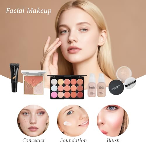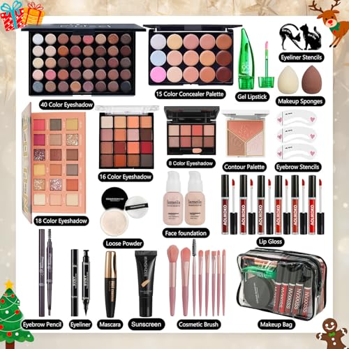 All in One Makeup Kit for Women Full Kit,Makeup Set for Women, Includes Eyeshadow Palette/Foundation/Lipstick/Eyeliner/Mascara/makeup Brush,Makeup Gift Set for Christmas & Birthday&Holiday&Everyday.