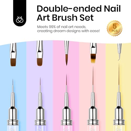 Beetles Nail Art Brushes Set 7 Pcs Double-ended Nail Art Brushes Kit Gel Polish Design Pen Liner Brush Petal Painting Brush Oval Brush Flat Brush Gradient Brush Dotting Pen Gifts for Women
