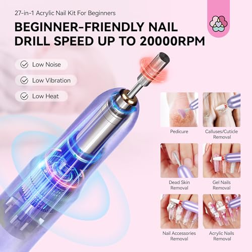 SAVILAND Acrylic Nail Kit with Drill: Professional Nails Kit Acrylic Set for Beginners with Everything U V Light Gel Polish Brushes Monomer Liquid Decorations & Tools Kit Home DIY Nail Art Salon