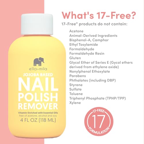 ella+mila Jojoba Nail Polish Remover Non-Acetone Nail Polish Remover – Non-Toxic Fingernail Polish Remover – Enriched With Jojoba oil & Vitamins (4 fl oz) Yellow
