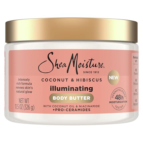 SheaMoisture Illuminating Body Butter with Coconut & Hibiscus, Niacinamide and Pro-Ceramides, Renewing Skin’s Natural Glow, 48H Moisturizing 11.5 oz
