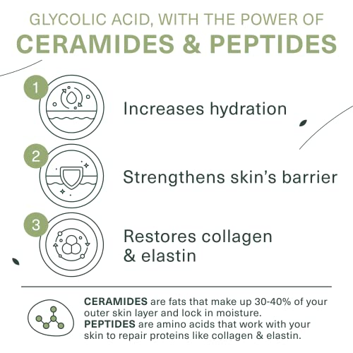 Botanic Tree Hydrating Glycolic Acid Cleanser – Exfoliating Face Wash – Face Cleanser for Women – Also with Ceramides & Peptides, Gently – for Dewy Bouncy Skin – 6oz