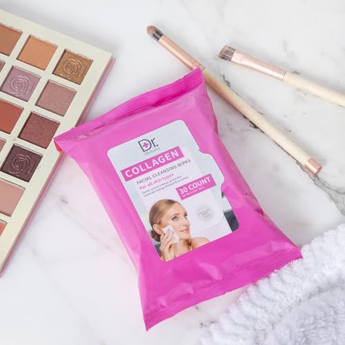 Dr. Wellness Gentle Cleansing Facial Wipes Variety Pack for All Skin Types, 30 Count (Pack of 4), Collagen