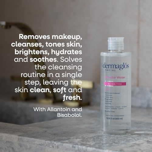 Dermaglos Micellar Water for All Skin Types Even Sensitive | All In 1 Hydrating Facial Cleanser & Makeup Remover, Brightening, Soothing, Gentle Face Toner | Alcohol-Free Formula | 13.52 Fl Oz