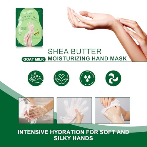 SULADEC Moisturizing Hand Mask with Shea Butter and Goat Milk, Hydrating Hand Masks for Dry Cracked Hands, Dry Skin Moisturizer for Soft and Smooth Touch Hands – Men Women – 5 Pairs