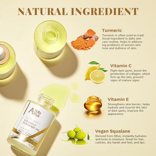 ANAI RUI Squalane Vitamin C Turmeric Facial Oil Moisturizer for Face, Hydrates, Firms Skin, 1fl.Oz.