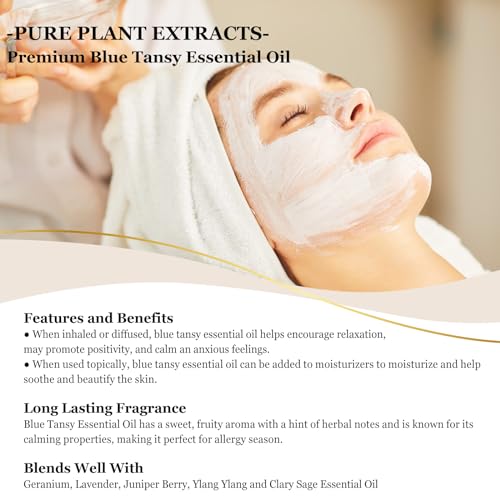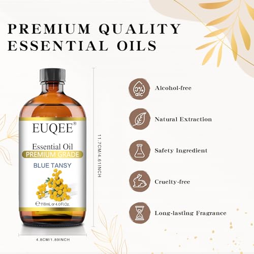 EUQEE Blue Tansy Essential Oil 118mL/4oz Pure Blue Tansy Oil Premium Essential Oil for Diffuser, Soap Making, Skin Care with Glass Dropper