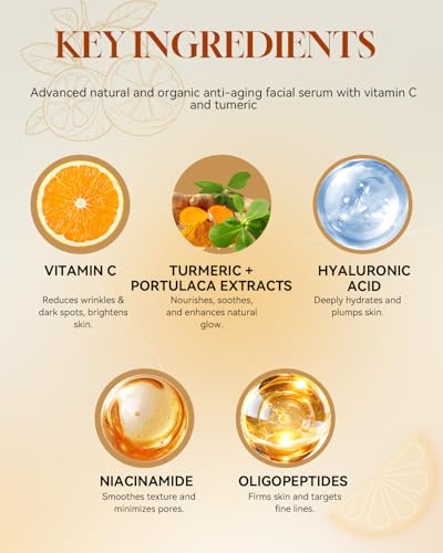 【Facial Serum to Reduce Dark Spots】Clinically proven ingredients like turmeric, Vitamin C, and niacinamide help fade hyperpigmentation and promote a more uniform skin tone over time