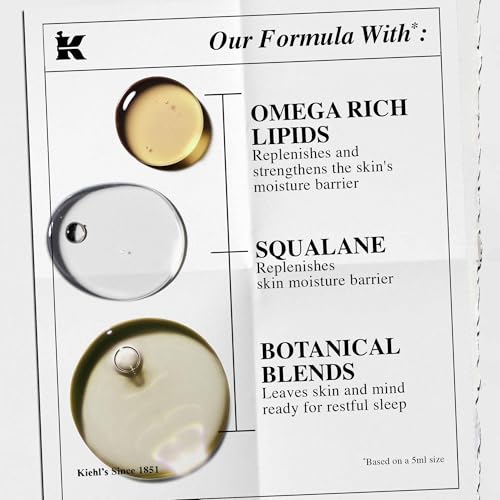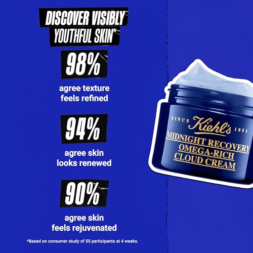 Kiehl’s Midnight Recovery Omega Rich Botanical Night Cream, Overnight Renewing Face Moisturizer, Plumps & Replenishes Skin Barrier, with Omega Oils & Fatty Acids, Lavender Scent – 1.7 fl oz